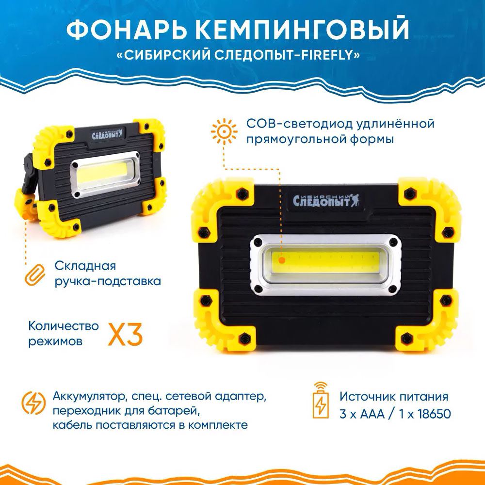Отзывы о Фонарь кемпинговый "СИБИРСКИЙ СЛЕДОПЫТ-FIREFLY" 1 COB, аккумулятор 220В, 3хААА PF-PFL-K17