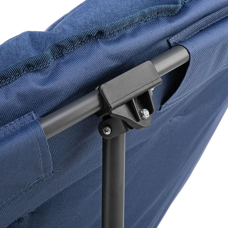 Ткань кресла изготовлена из полиэстера 1200D, который обеспечивает прочность и устойчивость к износу. Стул для рыбалки выдерживает максимальную нагрузку в 150 кг, что говорит о его высокой прочности и надежности.