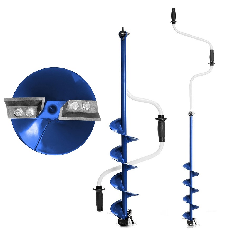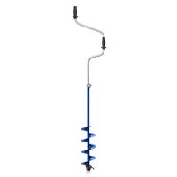 Ледобур рыболовный складной шнековый c левым вращением предназначен для бурения отверстий во льду при ловле рыбы. Верхняя рукоятка ледобура смещена относительно оси ледобура на 130 мм, а нижняя на 150 мм. Такое расположение рукояток позволяет вращать ледобур одновременно двумя руками, тем самым, не прикладывая особых усилий, увеличивая скорость бурения лунок во льду. Ледобур комплектуется ножами СКАТ 150 (арт. NLS-150L.SL).