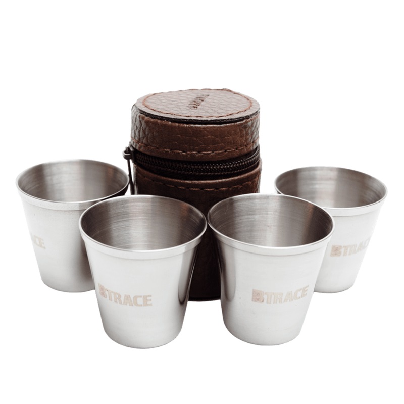 Набор стопок 4 шт по 25 мл Btrace C0111 в кожаном чехле.