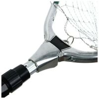 Сетка подсачека изготовлена из современного нейлона не подверженного гниению и растяжению.Благодаря жесткости материала сетки в ней не запутываются крючки приманок, что весьма удобно во время рыбной ловли.