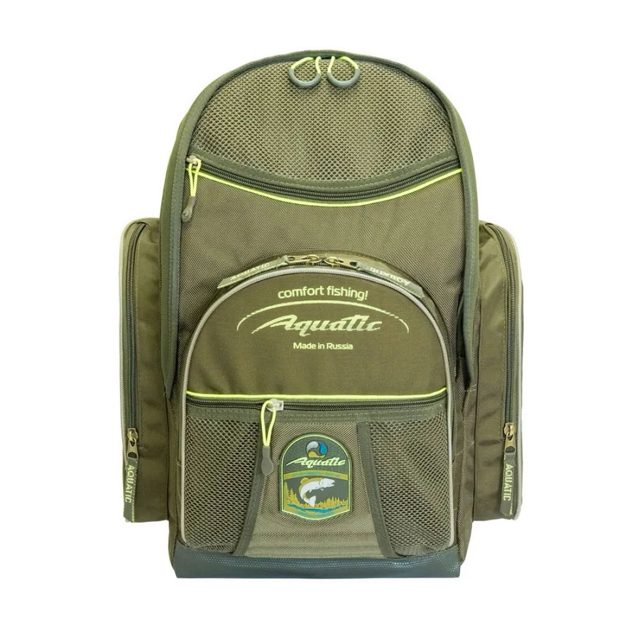 Рюкзак Р-33 рыболовный Aquatic состоит из общего отделения и 5 изолированных карманов. Вход в основное отделение защищен от влаги неопреновой лентой. Рюкзак имеет стандартную подвеску с грудной регулировкой и уплотненную спинку.