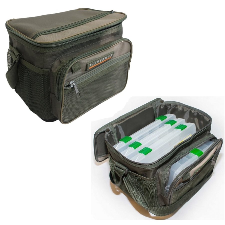 Сумка рыболовная с коробками Fisherman Ф43м-к (27*21*19см)