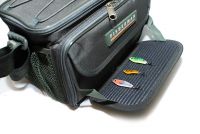 Откидывающаяся передняя панель имеет рифленую подложку для крючков, мушек, мелких блесен.