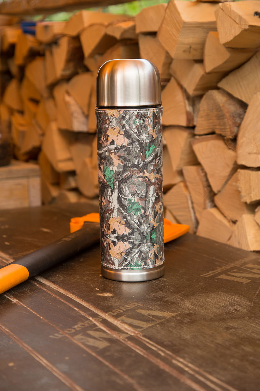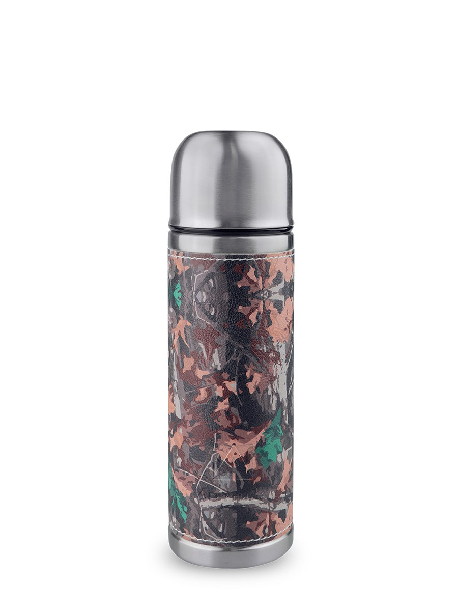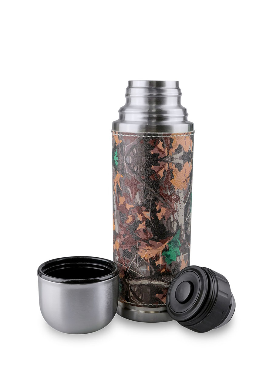 Этот термос – настоящий мастер маскировки, который по достоинству оценят любители любители стиля «милитари». Приятное на ощупь покрытие оплетки, имитирующее рисунок кожи канадского бизона, защищает термос от отпечатков и служит дополнительным термослоем. Оплетка легко снимается, если термос нужно промыть и просушить.