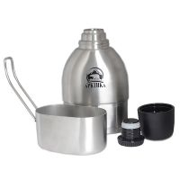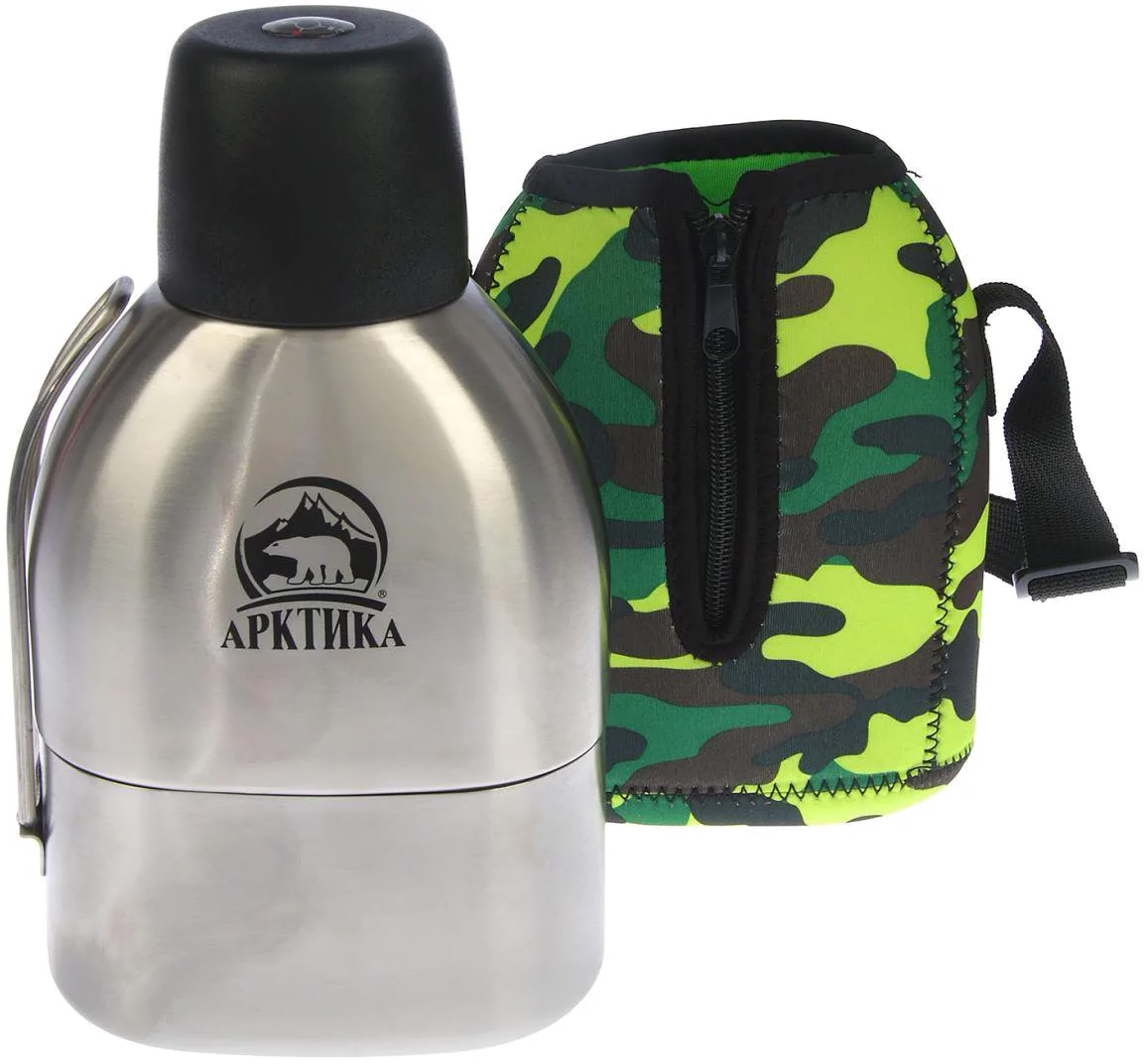 Термос- фляга, Крышка-чашка со встроенным компасом, глухая пробка, встроенный котелок-для разогрева на костре, защитный чехол с креплением к поясу и ремню