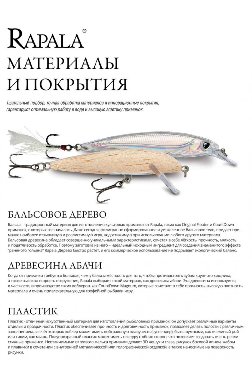 Воблер Rapala BX Minnow - отлично сбалансированная приманка из бальсы, покрытая оболочкой из современного полимера, прекрасно защищающего тело воблера.